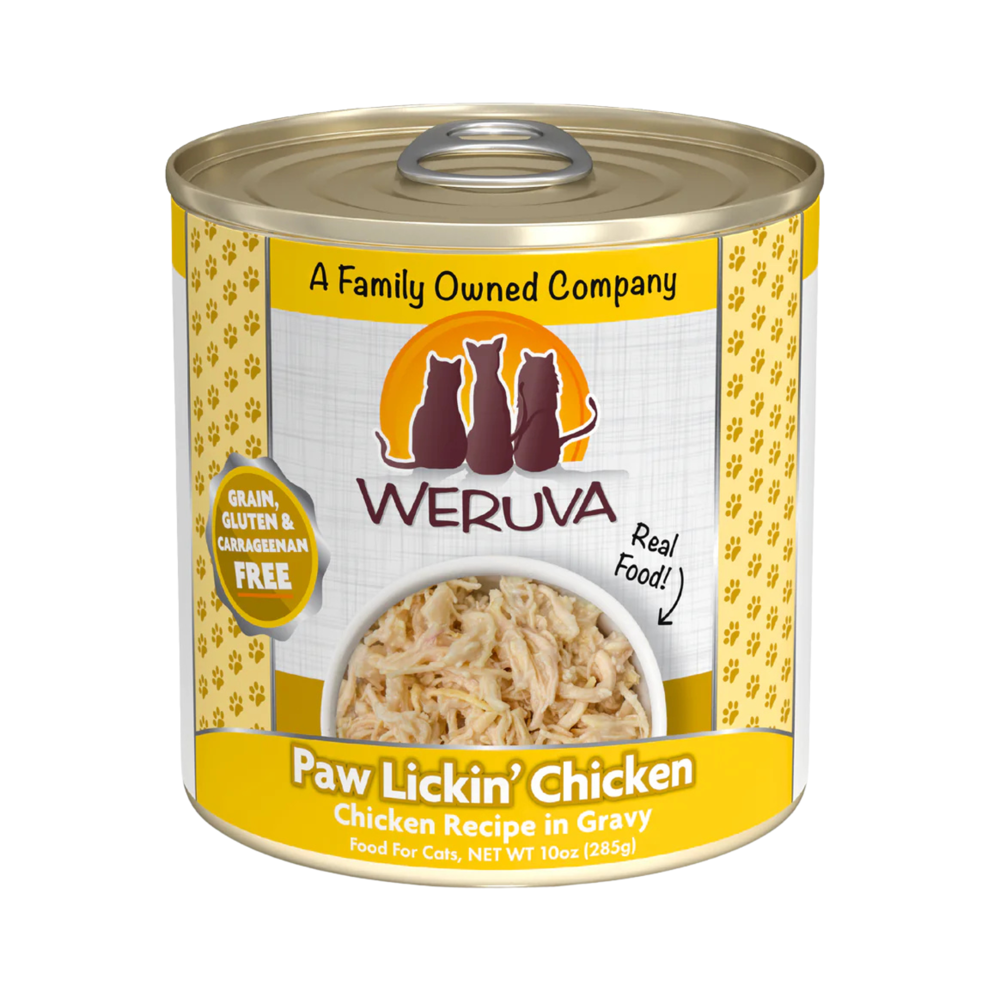 Weruva Paw Lickin' Chicken Chicken in Gravy Cat Canned is made with boneless, skinless white breast meat chicken and served in a delicious gravy. Free of antibiotics, added hormones, grain, gluten, and carrageenan, this recipe provides your cat with a nutritious meal they will love.
