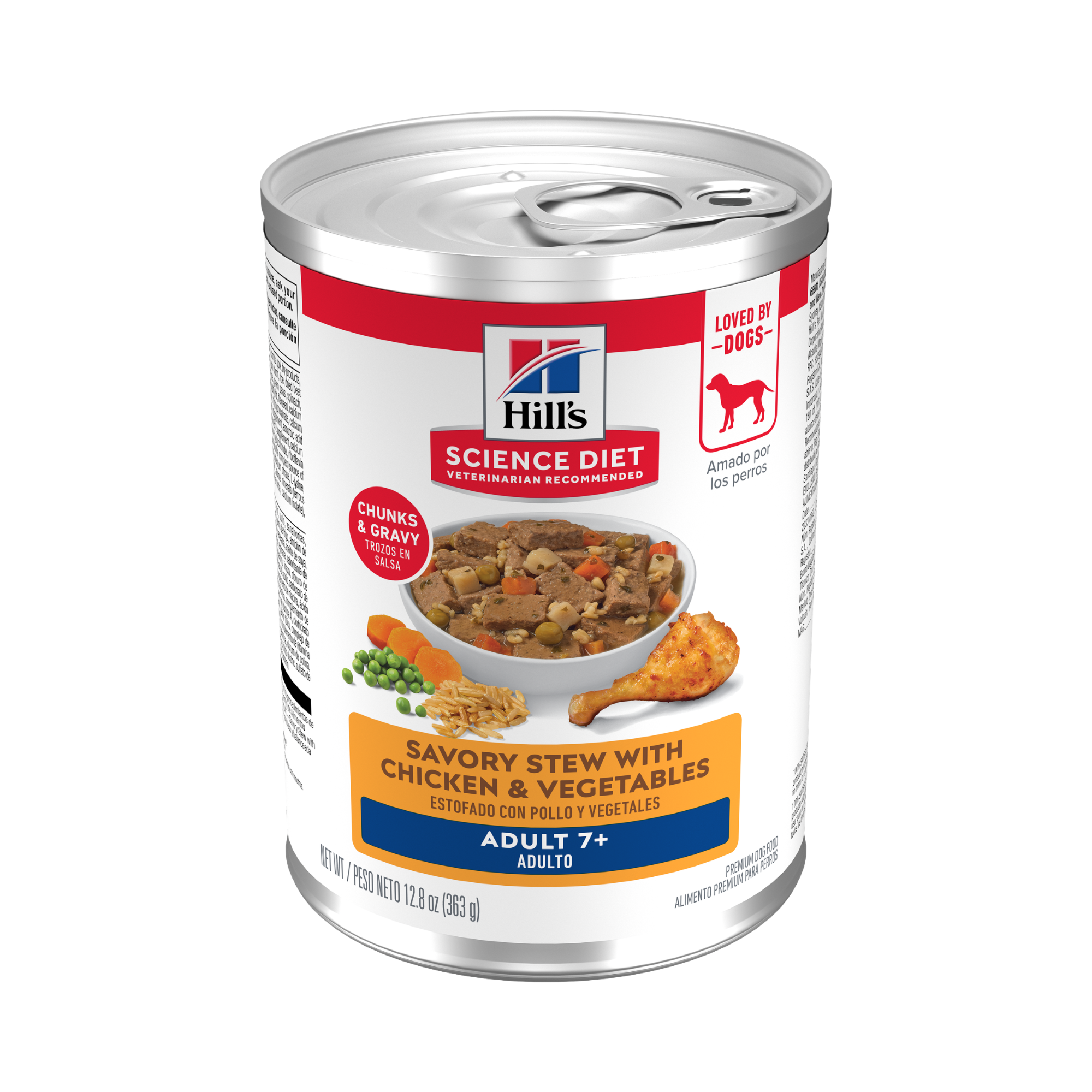 Hill's Science Diet Savory Stew Chicken & Vegetables Adult 7+ Dog Canned is formulated to meet the specific nutritional requirements of adult dogs aged 7 and older. With carefully balanced minerals for heart and kidney health, plus high-quality protein for lean muscles, this specially designed canned food provides 100% of the key nutrients older dogs need for a long, happy life. Fueled by purposeful ingredients for a flavorful, nutritious meal, your pet will love it and you can trust Hill's Science Diet every day.