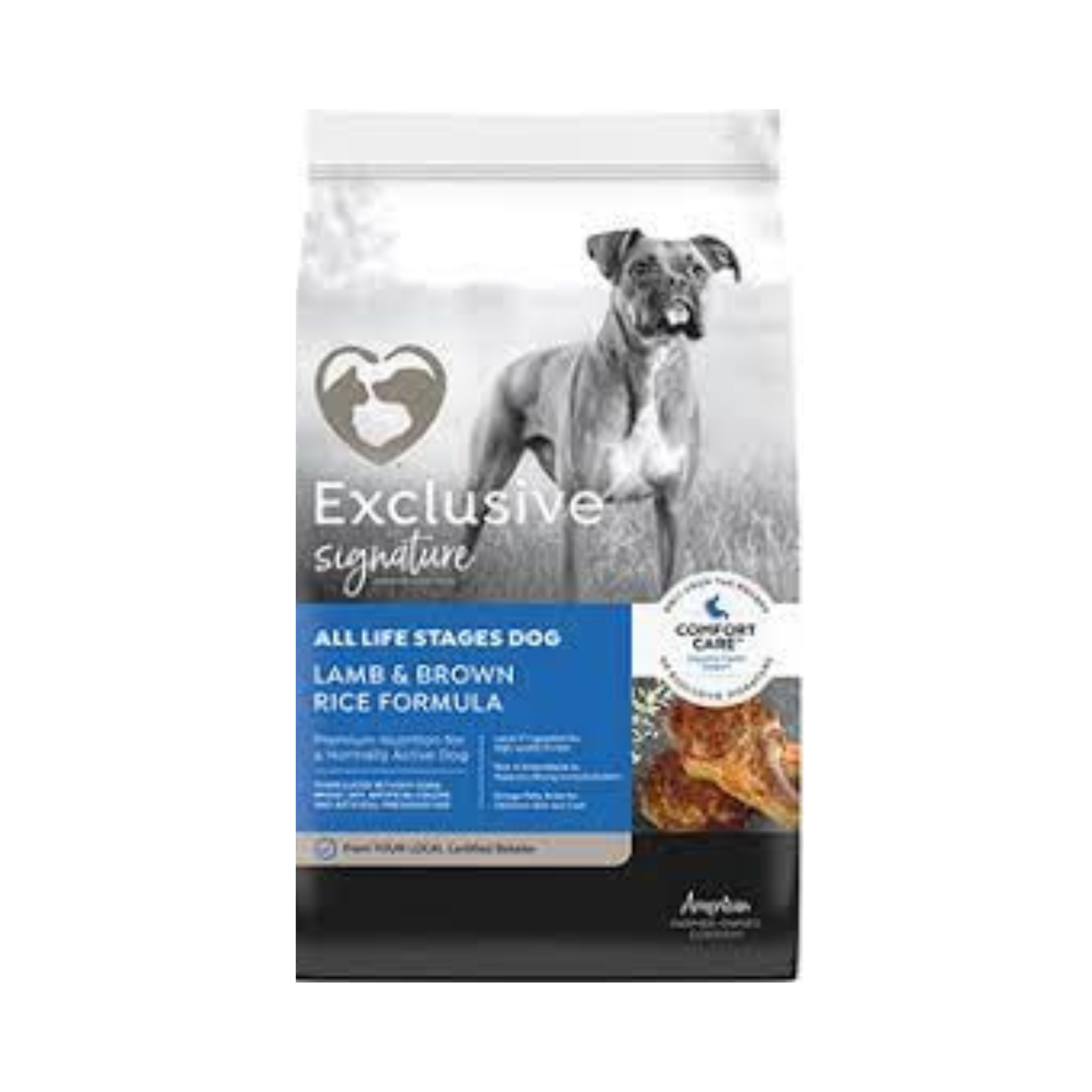 Designed for a normally active dog, the ingredients in Exclusive Signature All Life Stages Lamb & Brown Rice Formula are chosen to give today’s dogs what they’ve always liked and what they’ve always needed: real meat and real protein also added a carefully-selected balance of antioxidant-rich fruits and wholesome grains to support their health – but formulated without soy, wheat and artificial colors & preservatives.