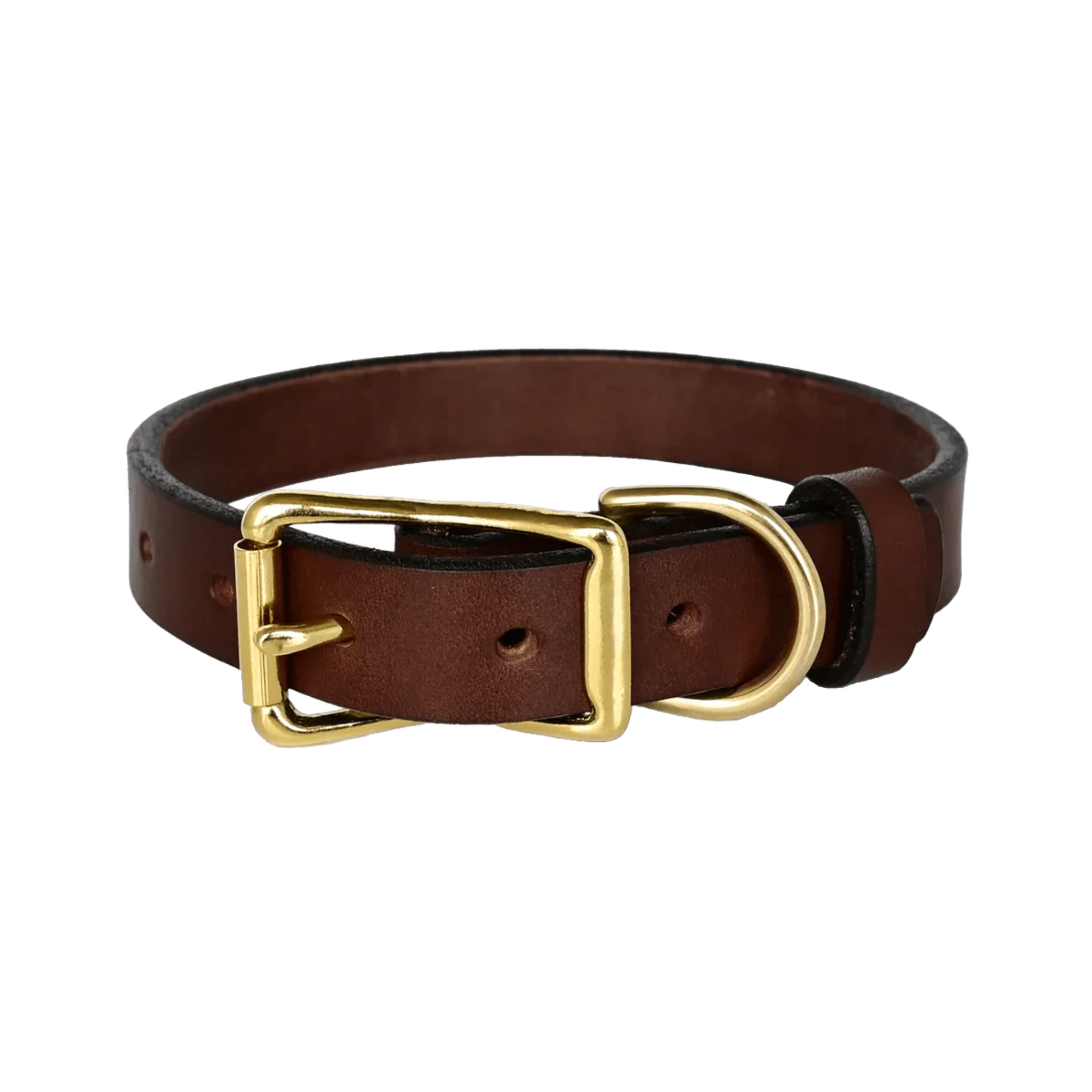 After having it brought to our attention time and time again that small dogs like to look tough and stylish too, we are happy to introduce our small breed dog collar. The collars are made from our premium full grain leather and feature a D-Ring for attaching your leash. It is constructed with solid brass hardware that will not rust and rivets are capped on the inside of the collar for a smooth, rounded surface that will not scratch your dog’s neck.