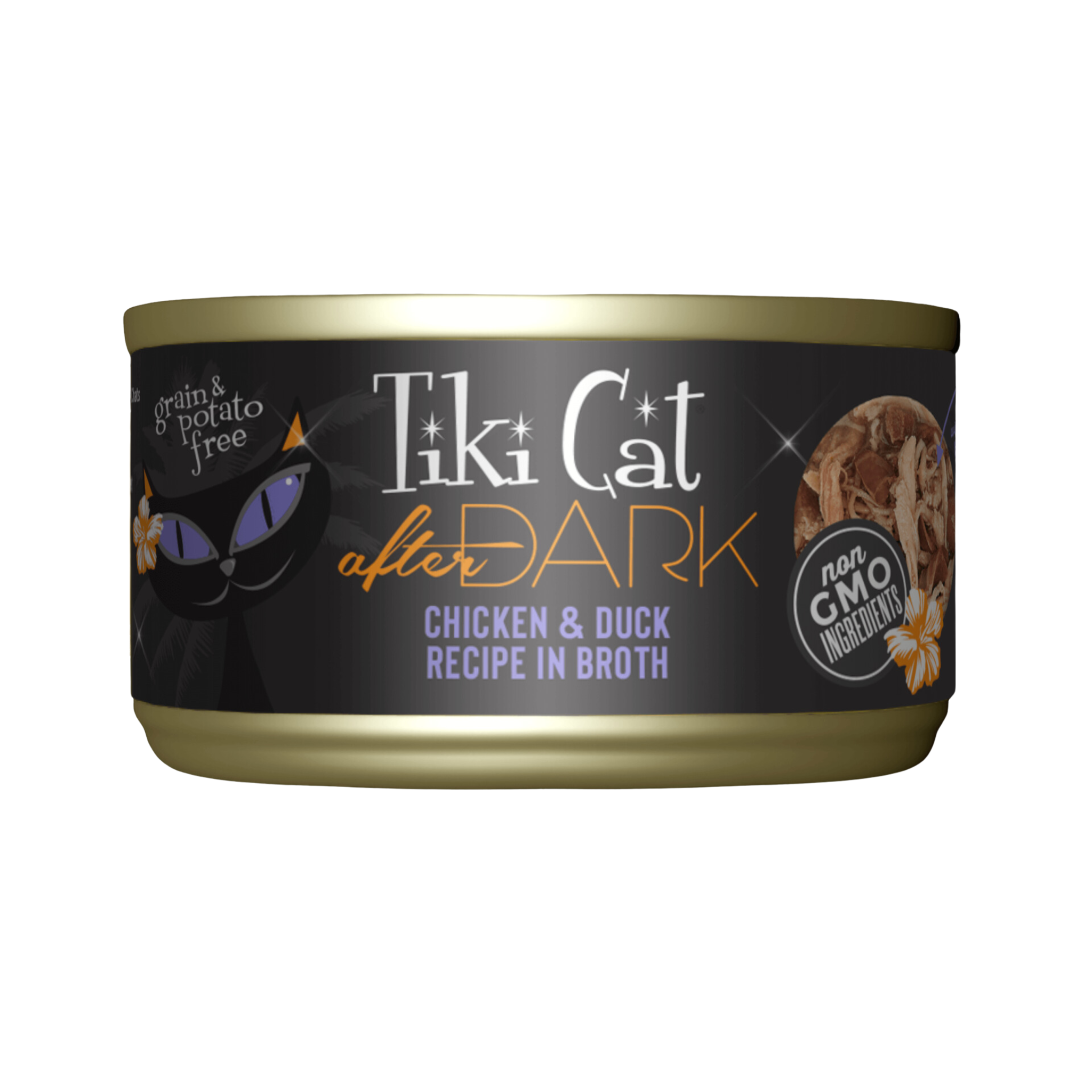 Our Tiki After Dark Chicken & Duck Cat Canned is a delicious way to give cats the real meat they need, including high-quality shredded chicken and organ meat. Perfect for felines, this savory broth contains real duck for added flavor.