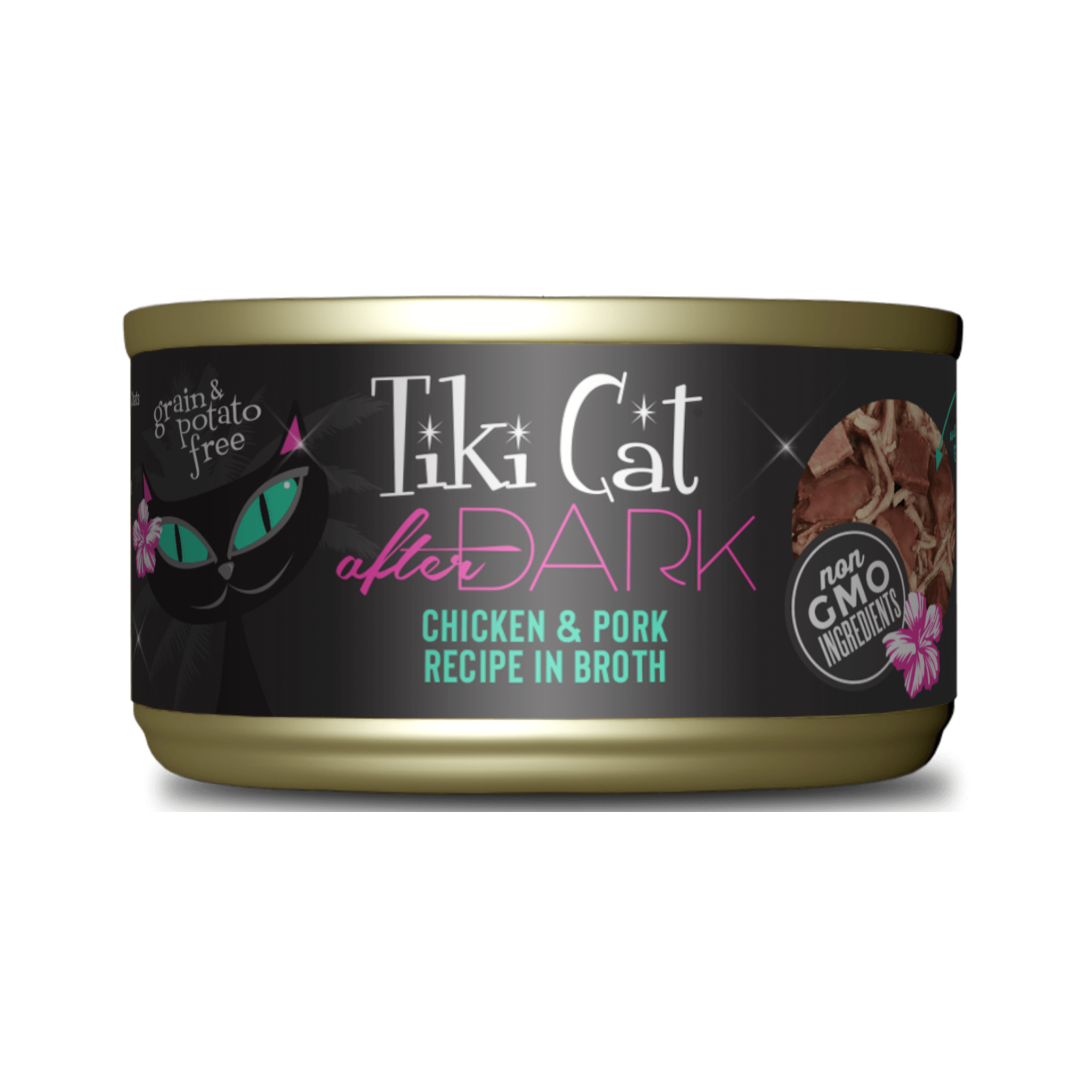 Treat your cat to a feast of succulent chicken and pork with Tiki After Dark Chicken & Pork Cat Canned. Made with real meat and organ meat, the hearty broth provides your cat with a full-flavored meal that's sure to please their senses.