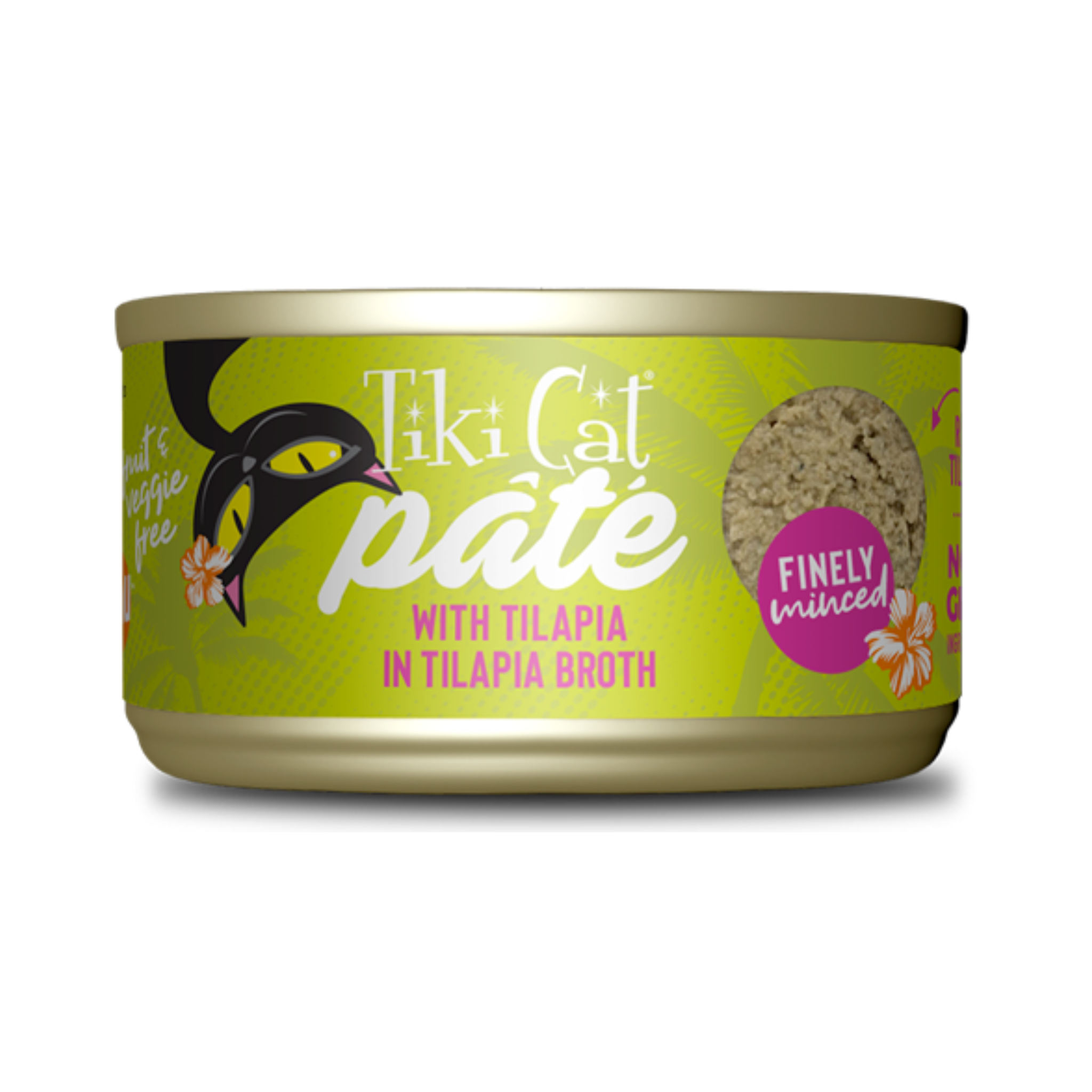 Tiki Cat® Luau Pate Tilapia Cat Canned is a high-quality wet food for cats, made with fine minced tilapia and mackerel simmered in olive oil-rich tilapia broth. Rich in essential fatty acids, it provides delicious supplemental hydration to your cat's diet.